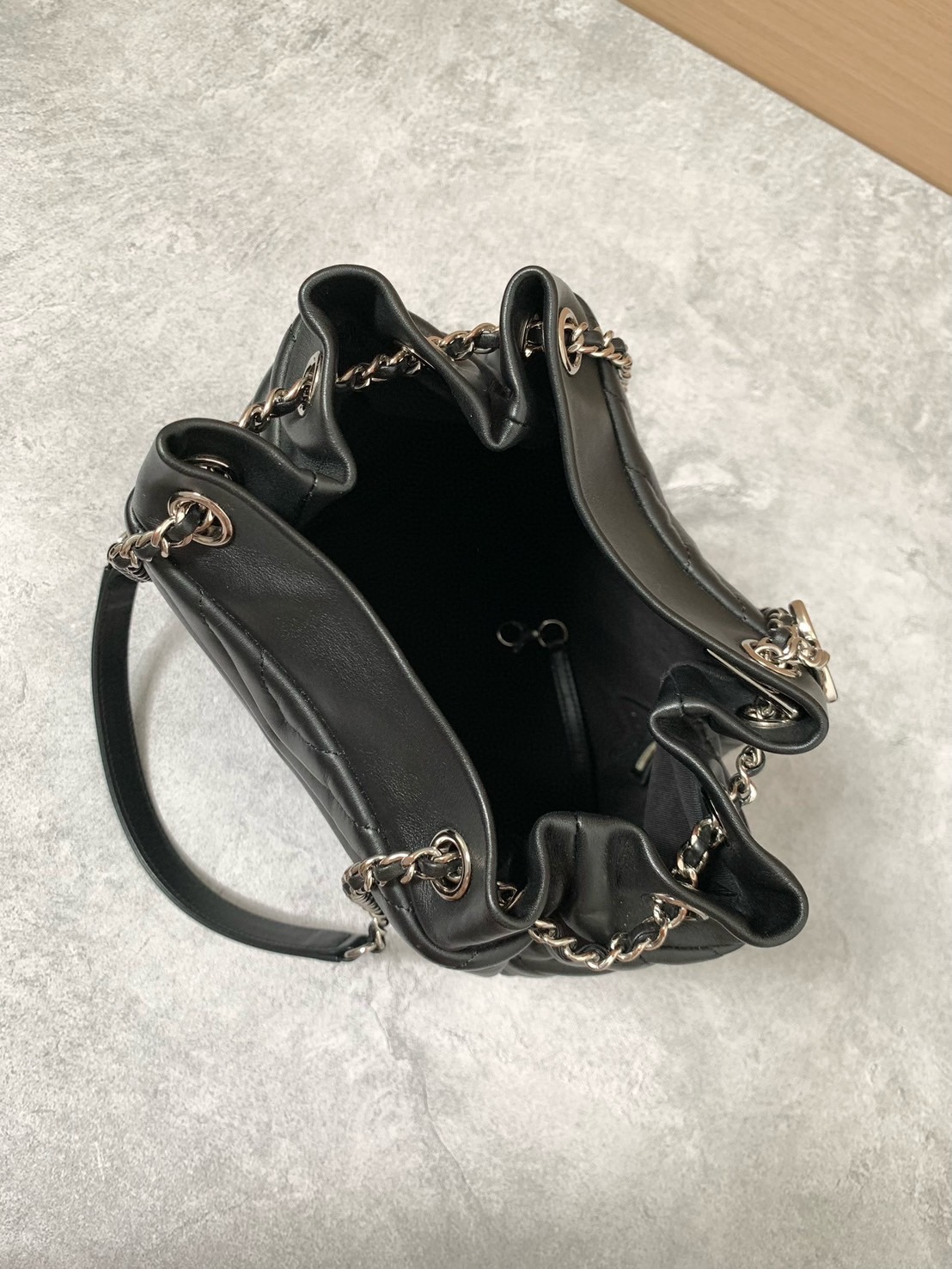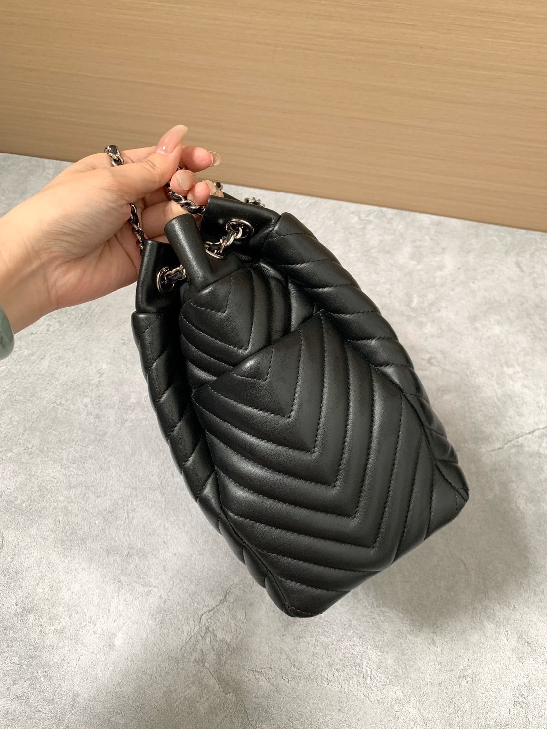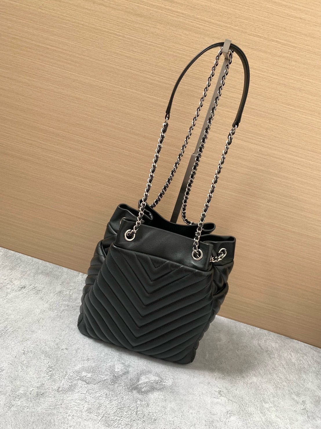 Chanel 牛皮V紋水桶包