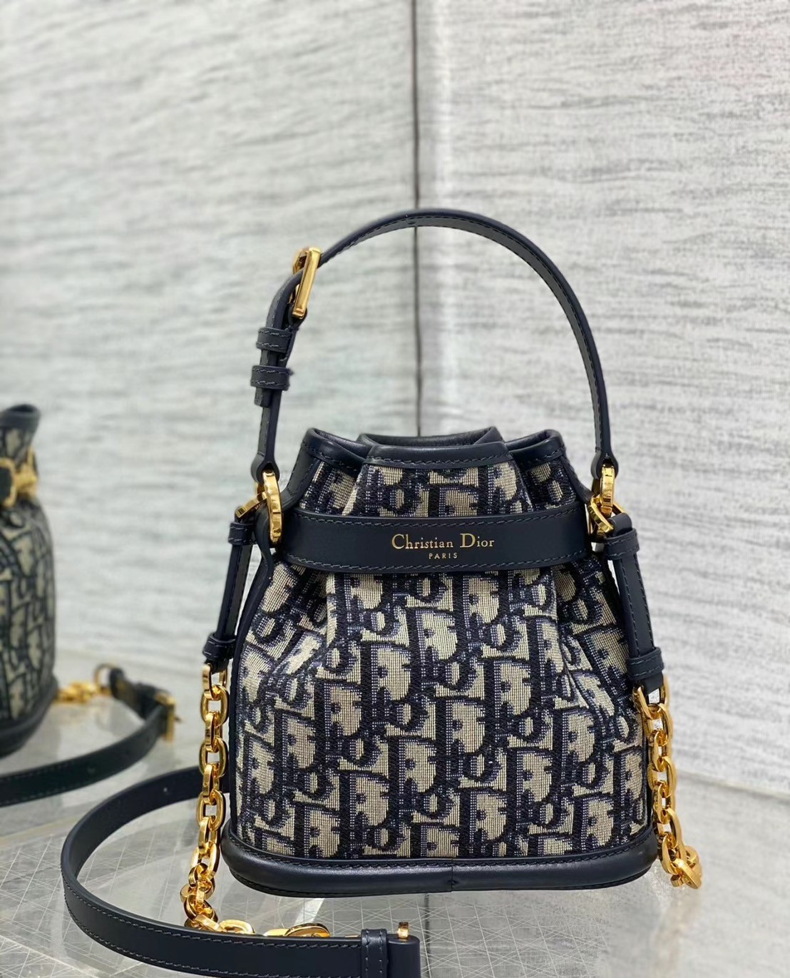 Dior C'est 肩帶老花滿印 Oblique 水桶包